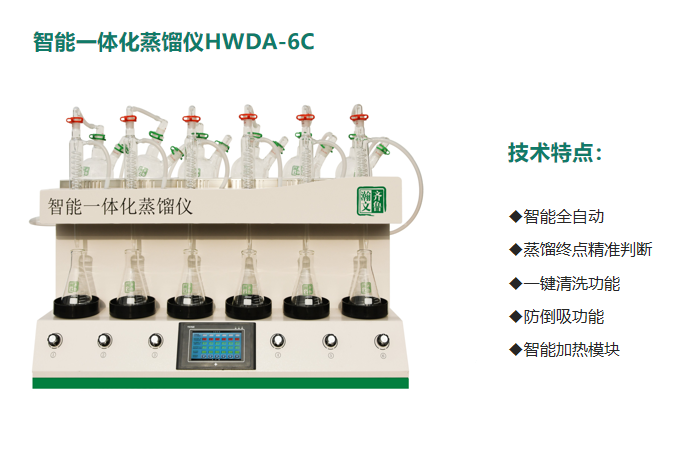 瀚文自主研發(fā)生產(chǎn)的智能一體化蒸餾儀采用微電腦控制,實現(xiàn)整個蒸餾過程無需人工值守、操作簡單、節(jié)水節(jié)電,同時具備精確控溫、自動蒸餾、循環(huán)冷凝、防倒吸、防爆沸、冷凝管自動排空、餾出液量任設(shè)、管路一鍵清洗等功能。